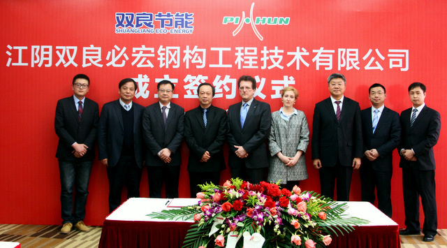 近日,双良节能系统股份有限公司与全球间冷钢塔知名设计公司---匈牙利必宏工程有限公司签订合作协议,共同成立江阴双良必宏钢构工程技术有限公司。双良与必宏公司的紧密携手,将有力推动间冷钢塔在全球范围内的应用,提升双良空冷产业核心竞争力,形成产业链竞争优势,为实现跨越式的发展夯实资源基础。